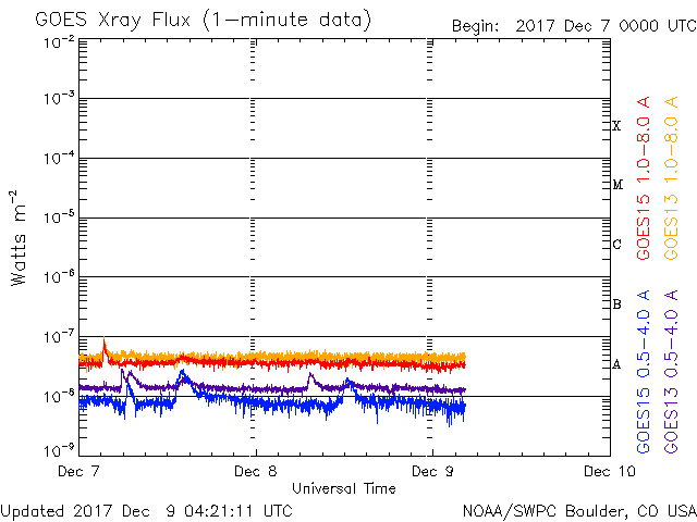2017/12/ 8 12:38 太陽は無黒点です。太陽風の高まりは終わりに向かっています。