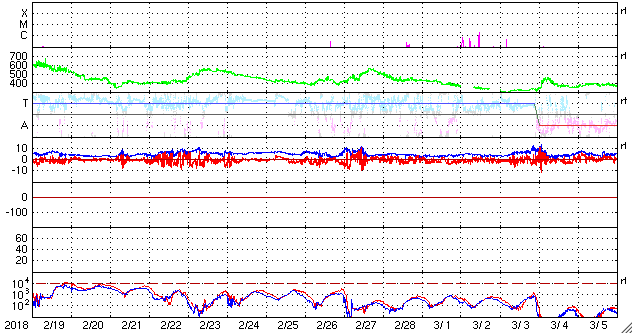 現在は少し下がって 5〜7nTくらいです。