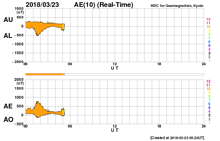 AE指数では、500〜800nTの中規模の変化になっています。