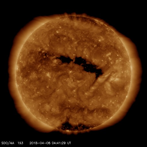 コロナホールが太陽の中心部に広がり、