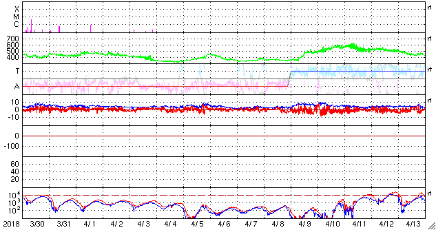 概ね、5〜6nTと平均的な状態が続いています。