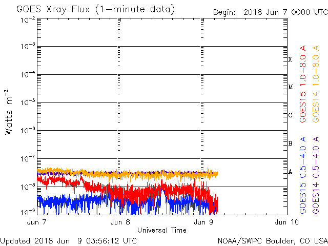 - 2018/ 6/ 4 12:41 太陽風は600km/秒の高い速度が続いています。太陽はほぼ無黒点です。
