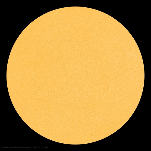 - 2018/ 7/22 13:43 黒点は見えなくなっています。太陽風はやや高速です。