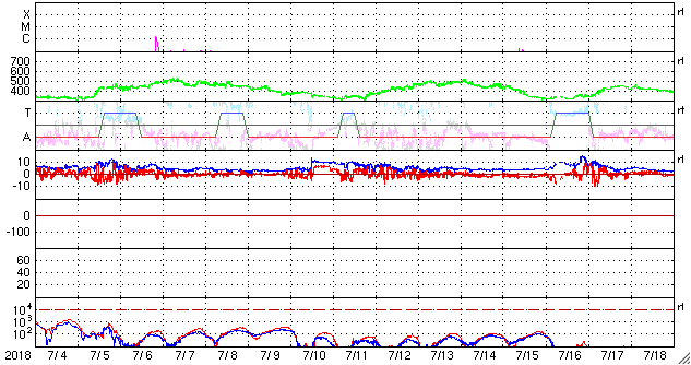 (c) 国立極地研究所、(動画加工 : 宇宙天気ニュース) ![]() SDO衛星のAIA193カメラによる太陽コロナの様子 (c) SDO (NASA) ![]() SDO衛星による太陽の可視光写真 (c) SDO (NASA) ![]() DSCOVRが観測した太陽風の磁場(1番上の枠、黒線は全体の強度、赤線は南北成分) および、太陽風の密度(3番目の紫線)、速度(4番目の青線) (c) データ:NOAA/SWPC、作図:宇宙天気ニュース ![]() AE指数(速報値) 下段のAEグラフの値が高くなると、オーロラ活動が活発化しています。 (c) 京都大学WDC ![]() ![]() 27日の太陽周期に合わせたデータプロット 太陽が同じ面を地球に向けていた27日前の変化から、今後を予想することができます。 (c) 作図:宇宙天気ニュース