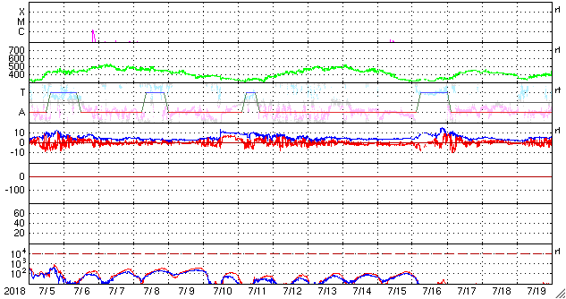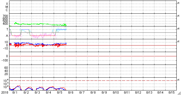 - 2018/ 8/ 5 11:31 太陽風は低速になり、磁気圏も穏やかです。