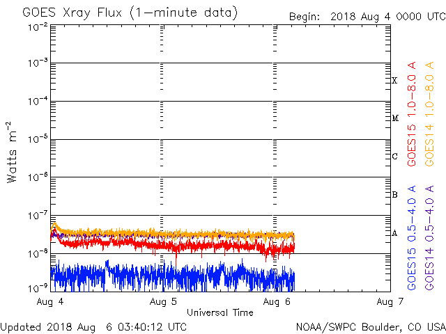 - 2018/ 8/ 3 13:46 太陽は無黒点に戻っています。太陽風は穏やかです。