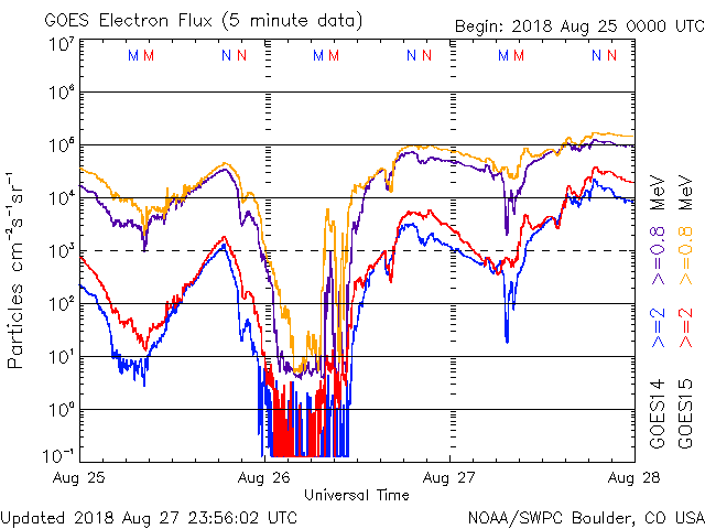 (c) NOAA/SWPC ![]() GOES衛星による、静止衛星軌道における高エネルギー電子の変化 (c) NOAA/SWPC ![]() | ||||||||||||||||||||||||||||||||||||||||||||||||||||||||||||||||||||||||||||||||||||||||||||||||||||||||||||||||||||||||||||||||||||||||||||||||||||||||||||||||||||||||||||||||||||||||||||||||||||||||||||||
