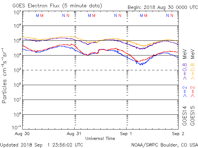 (c) NOAA/SWPC ![]() GOES衛星による、静止衛星軌道における高エネルギー電子の変化 (c) NOAA/SWPC ![]() | ||||||||||||||||||||||||||||||||||||||||||||||||||||||||||||||||||||||||||||||||||||||||||||||||||||||||||||||||||||||||||||||||||||||||||||||||||||||||||||||||||||||||||||||||||||||||||||||||||||||||||||||