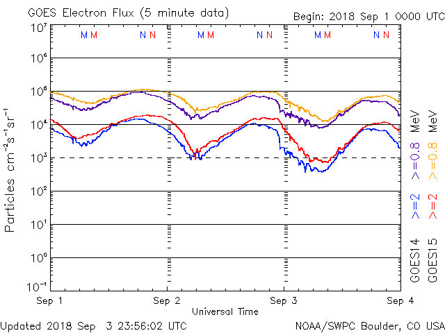 (c) NOAA/SWPC ![]() GOES衛星による、静止衛星軌道における高エネルギー電子の変化 (c) NOAA/SWPC ![]() | ||||||||||||||||||||||||||||||||||||||||||||||||||||||||||||||||||||||||||||||||||||||||||||||||||||||||||||||||||||||||||||||||||||||||||||||||||||||||||||||||||||||||||||||||||||||||||||||||||||||||||||||||