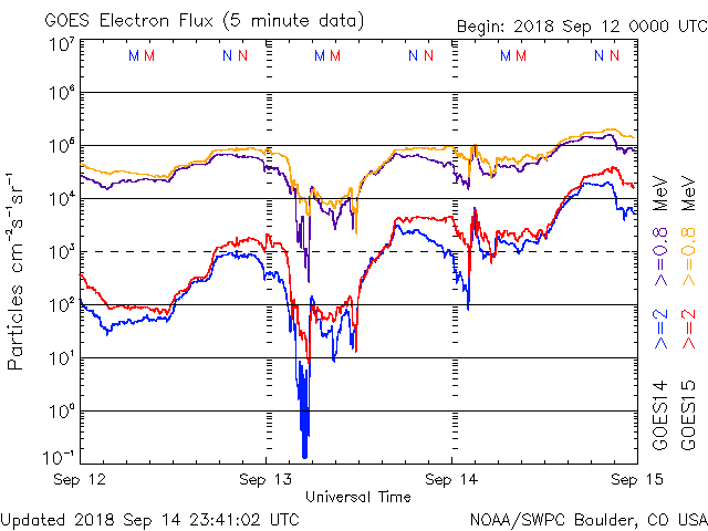 (c) NOAA/SWPC ![]() GOES衛星による、静止衛星軌道における高エネルギー電子の変化 (c) NOAA/SWPC ![]() | ||||||||||||||||||||||||||||||||||||||||||||||||||||||||||||||||||||||||||||||||||||||||||||||||||||||||||||||||||||||||||||||||||||||||||||||||||||||||||||||||||||||||||||||||||||||||||||||||||||||||||||||||