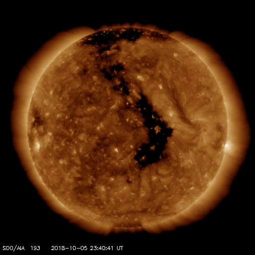 SDO衛星AIA193のコロナホールの影響が近付いています。