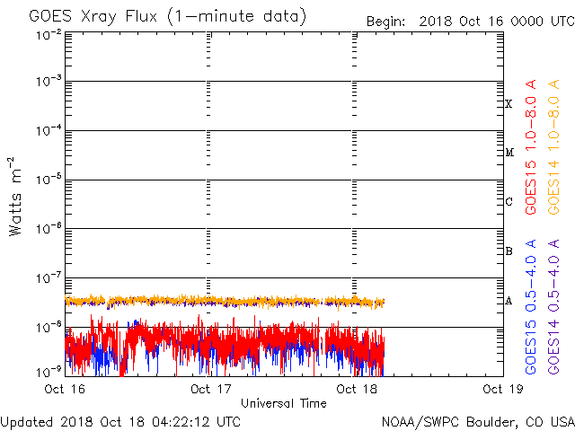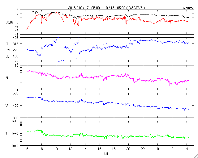- 2018/10/16 12:15 高速の太陽風は続いていますが、これから下がりそうです。