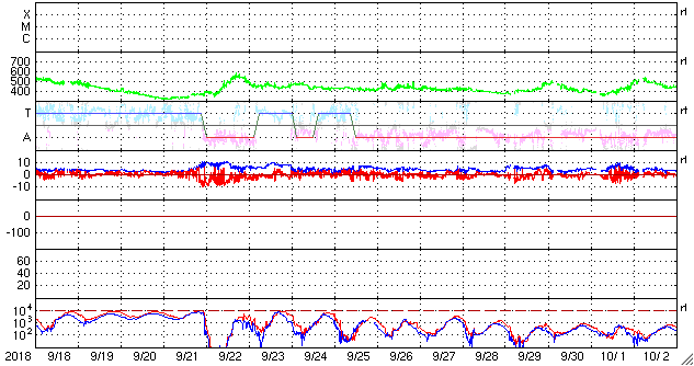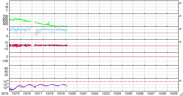 - 2018/10/16 12:15 高速の太陽風は続いていますが、これから下がりそうです。