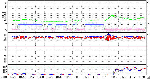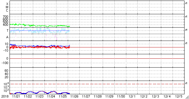 グラフの最後で6nTに少し上がっていますが、小さい変化の範囲です。