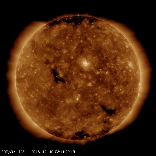 - 2018/12/15 14:59 太陽風は低速になっています。2731黒点群が見えています。