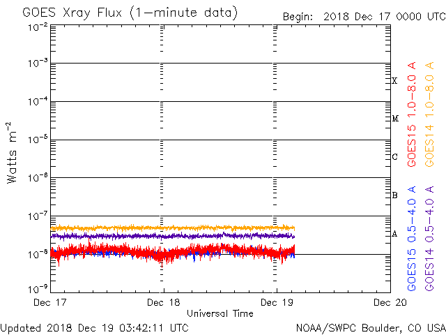 | 太陽放射線と放射線帯電子はともに静穏です。 |