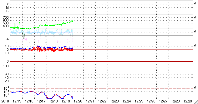 2018/12/18 11:37 太陽風は平均的な速さになり、磁気圏も小規模の活動が見られています。
