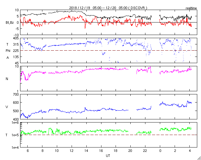 2018/12/19 12:52 太陽風はやや高速になっています。