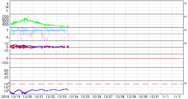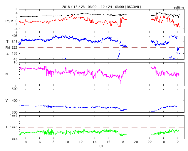 2018/12/23 09:23 太陽風は低速になり、磁気圏もとても穏やかです。