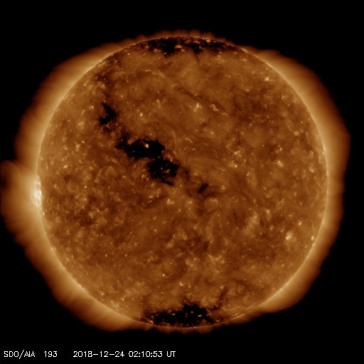 2018/12/20 13:25 太陽風は600km/秒の高速風になっています。