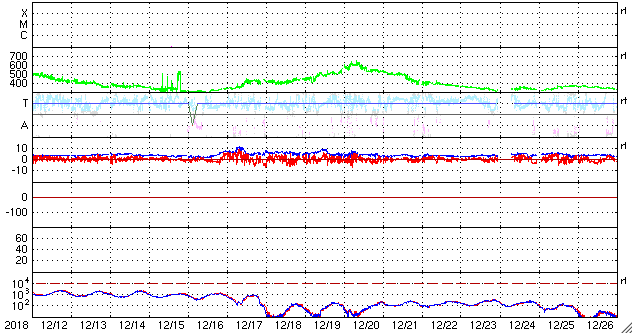 磁場強度は、3nTとやや弱い状態です。