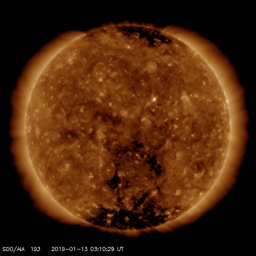 - 2019/ 1/ 8 12:01 太陽風の速度はゆっくりと低下しています。太陽は無黒点です。