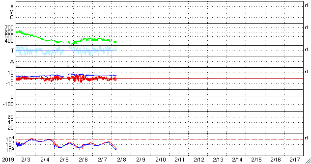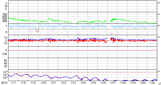 - 2019/ 2/ 3 12:57 太陽風は600km/秒の高速状態です。磁気圏も活動的です。