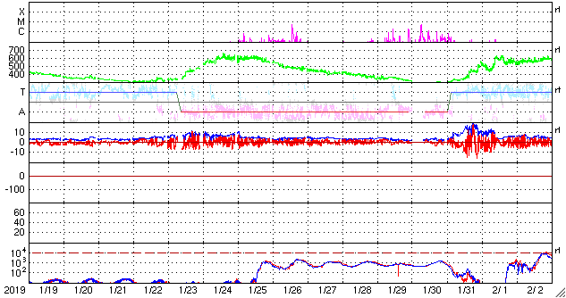 磁場強度も、3nTとやや弱い状態です。