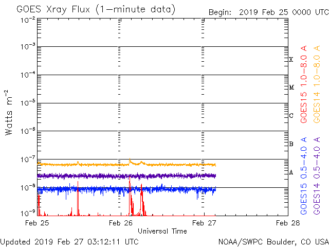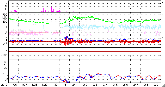 - 2019/ 2/22 12:40 太陽風はやや高速になり、磁気圏の活動も少し高まっています。