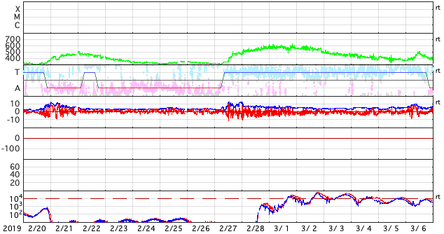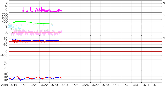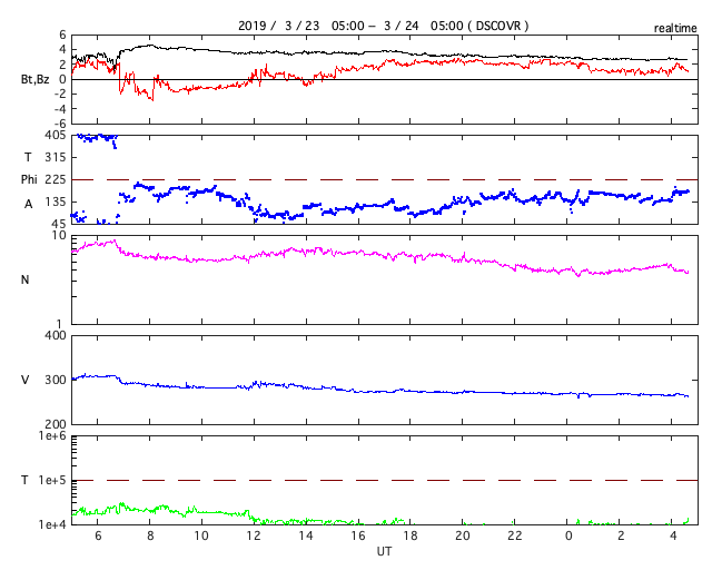 - 2019/ 3/23 14:07 2736黒点群の活動は続いています。CMEによる太陽風の変化に注目してください。