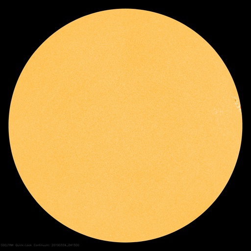 可視光写真では、黒点群は太陽の西の端に近付き、