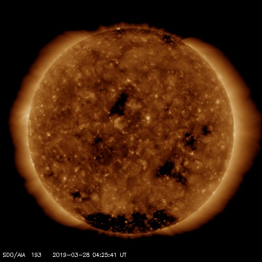 - 2019/ 3/25 13:22 太陽風に小さい変化が発生しています。太陽は無黒点になっています。