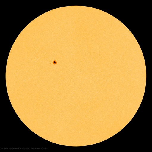 - 2019/ 4/ 8 13:49 太陽の東端から黒点が現れました。太陽風は平均的な速度です。