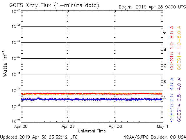 - 2019/ 4/30 12:24 太陽風は更に低速になっています。太陽もとても静かです。