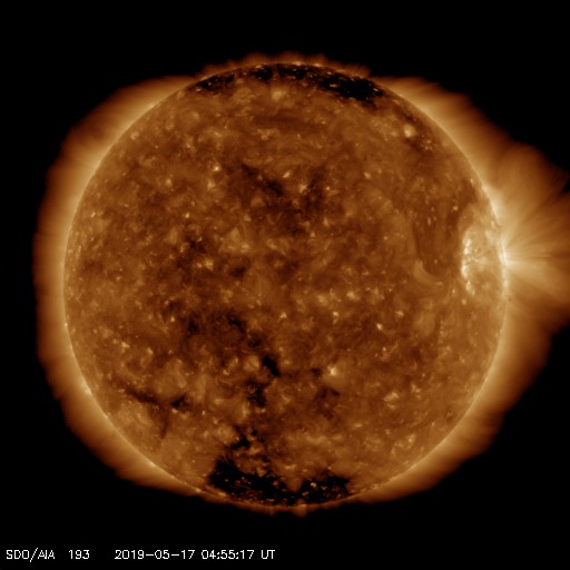 - 2019/ 5/14 13:38 太陽風は540km/秒の高速風になっています。2741群でCMEが発生しています。