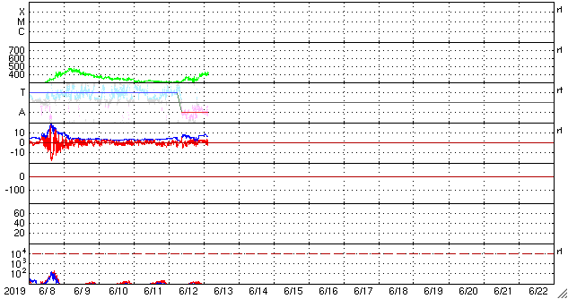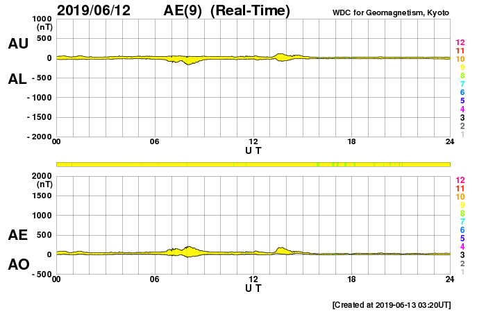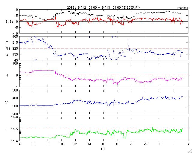 - 2019/ 6/ 9 10:37 太陽風の高まりが到来して、磁気圏の活動を高めています。