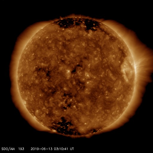 - 2019/ 6/ 8 10:35 太陽風は280km/秒とかなり遅くなっています。太陽は無黒点です。
