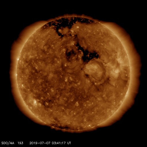 SDO衛星AIA193では、コロナホールが更に西に進み、