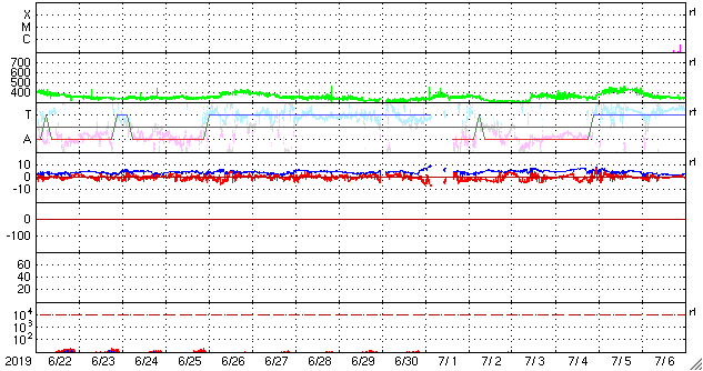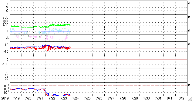 - 2019/ 7/20 10:05 太陽風は低速の状態になり、磁気圏も穏やかです。