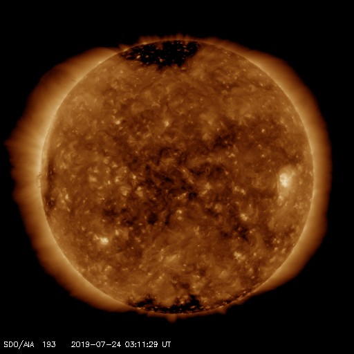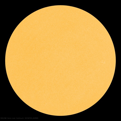 - 2019/ 7/23 12:25 黒点は見えなくなりました。太陽風は平均的な速度になっています。