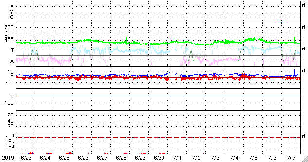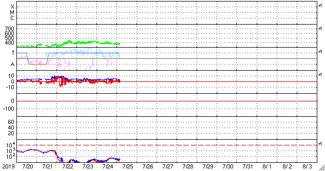 - 2019/ 7/20 10:05 太陽風は低速の状態になり、磁気圏も穏やかです。