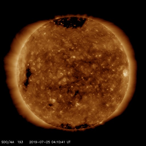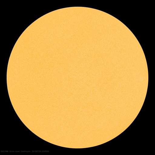 - 2019/ 7/23 12:25 黒点は見えなくなりました。太陽風は平均的な速度になっています。