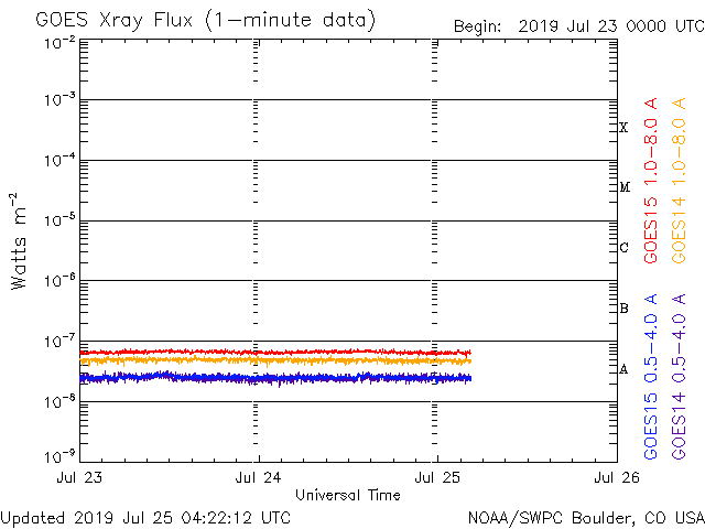 | 太陽放射線と放射線帯電子はともに静穏です。 |