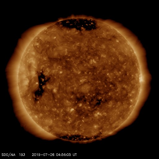 - 2019/ 7/24 12:17 太陽風は平均的な速さです。太陽は無黒点です。