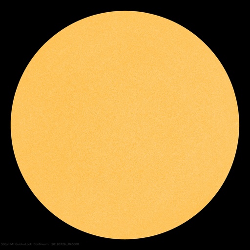 - 2019/ 7/23 12:25 黒点は見えなくなりました。太陽風は平均的な速度になっています。