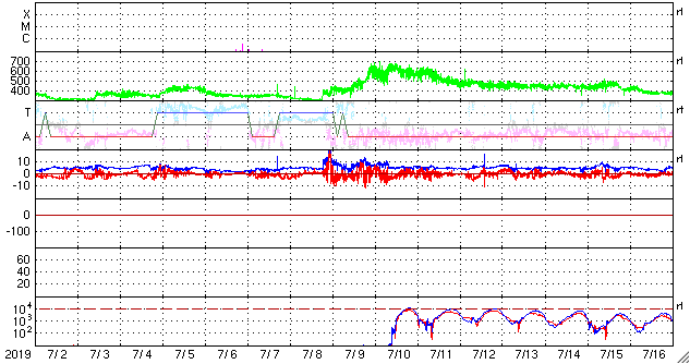 - 2019/ 7/29 13:43 太陽風は低速で、磁気圏も穏やかです。
