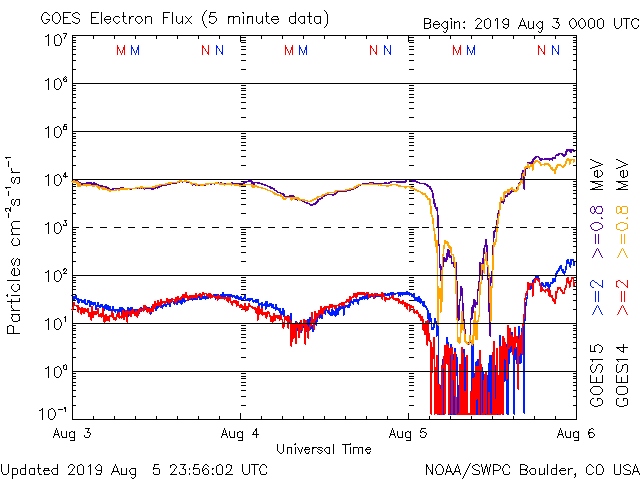 (c) NOAA/SWPC ![]() GOES衛星による、静止衛星軌道における高エネルギー電子の変化 (c) NOAA/SWPC ![]() | ||||||||||||||||||||||||||||||||||||||||||||||||||||||||||||||||||||||||||||||||||||||||||||||||||||||||||||||||||||||||||||||||||||||||||||||||||||||||||||||||||||||||||||||||||||||||||||||||||||||||||||||||