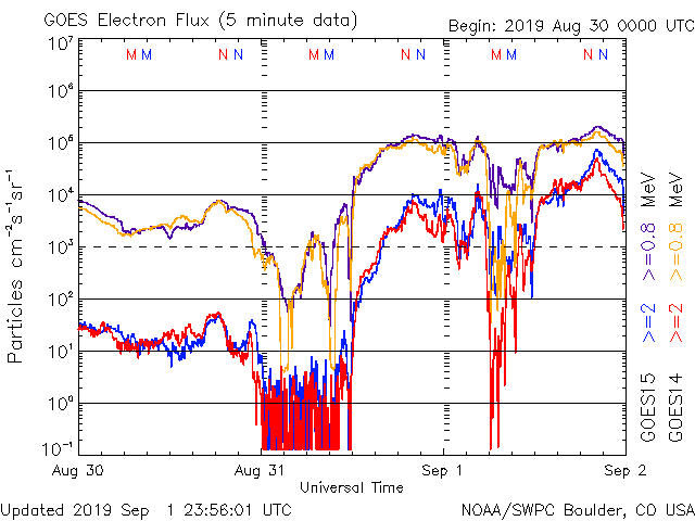 (c) NOAA/SWPC ![]() GOES衛星による、静止衛星軌道における高エネルギー電子の変化 (c) NOAA/SWPC ![]() | ||||||||||||||||||||||||||||||||||||||||||||||||||||||||||||||||||||||||||||||||||||||||||||||||||||||||||||||||||||||||||||||||||||||||||||||||||||||||||||||||||||||||||||||||||||||||||||||||||||||||||||||