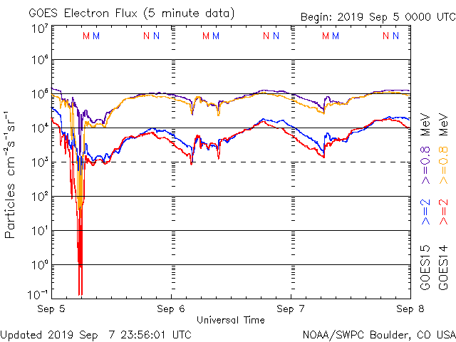 (c) NOAA/SWPC ![]() GOES衛星による、静止衛星軌道における高エネルギー電子の変化 (c) NOAA/SWPC ![]() | ||||||||||||||||||||||||||||||||||||||||||||||||||||||||||||||||||||||||||||||||||||||||||||||||||||||||||||||||||||||||||||||||||||||||||||||||||||||||||||||||||||||||||||||||||||||||||||||||||||||||||||||||