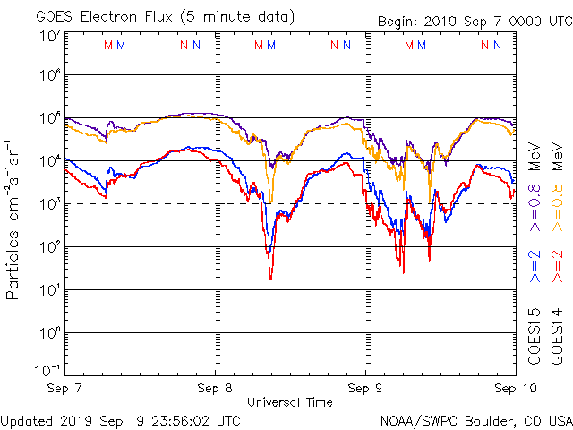 (c) NOAA/SWPC ![]() GOES衛星による、静止衛星軌道における高エネルギー電子の変化 (c) NOAA/SWPC ![]() | ||||||||||||||||||||||||||||||||||||||||||||||||||||||||||||||||||||||||||||||||||||||||||||||||||||||||||||||||||||||||||||||||||||||||||||||||||||||||||||||||||||||||||||||||||||||||||||||||||||||||||||||||